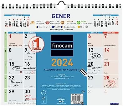 Finocam Calendar 2024 Wall Colour to Write January 2024